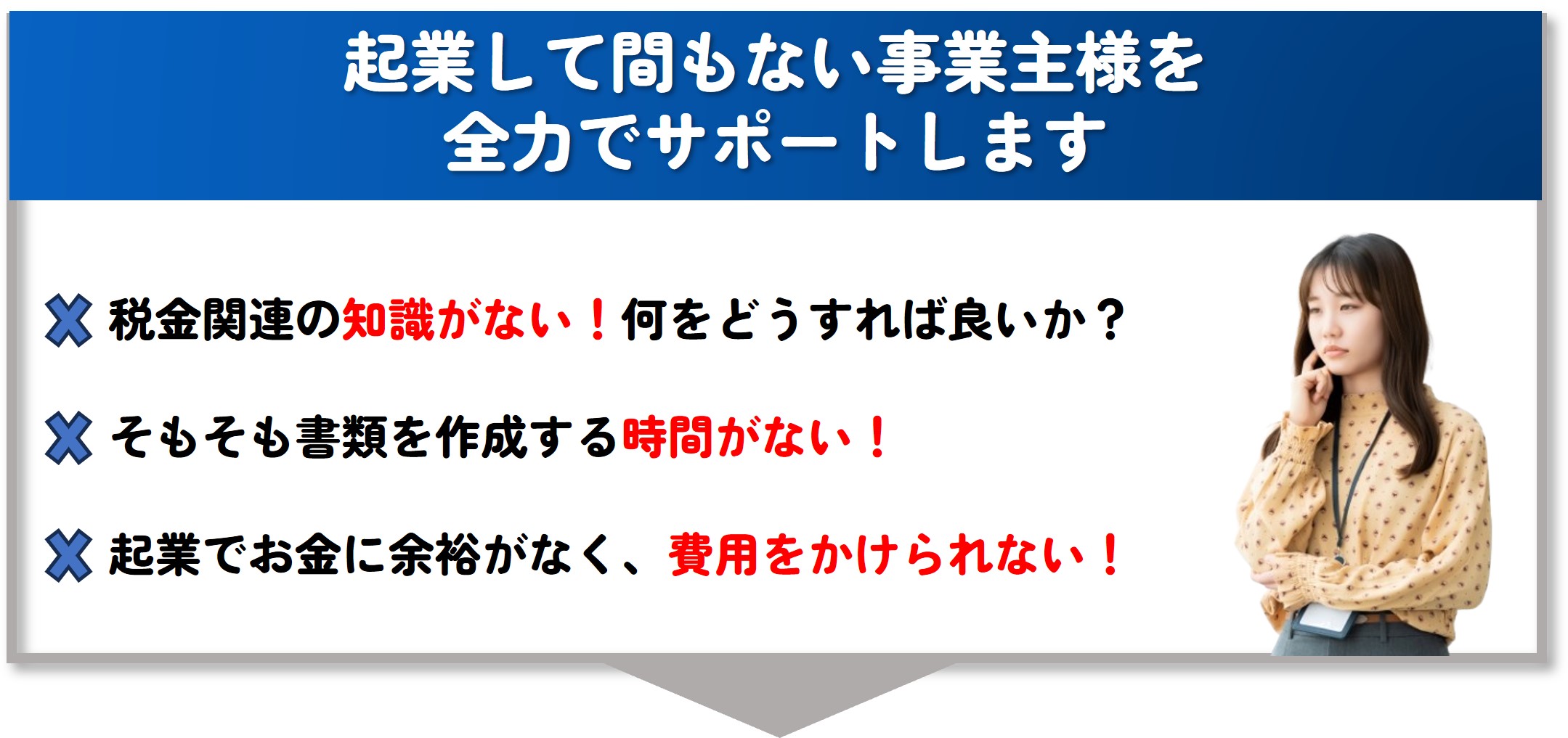 右側に入力す物価上昇や人手不足、賃金上昇など、創業間もない事業主様には、大変厳しい環境となっています。