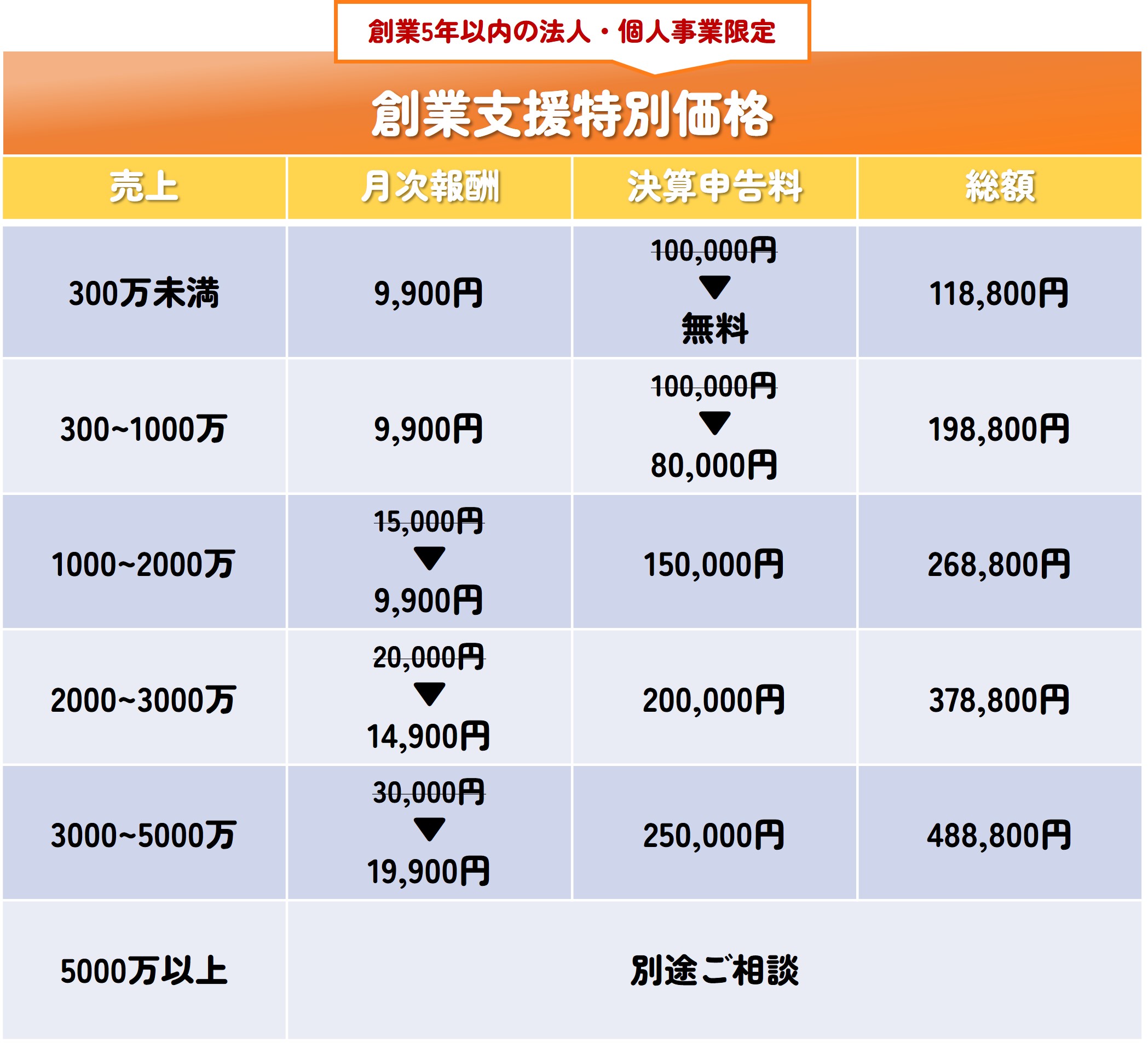 弊社の指定の月に変更頂いた場合、変更年度の決算申告料を無料とします。